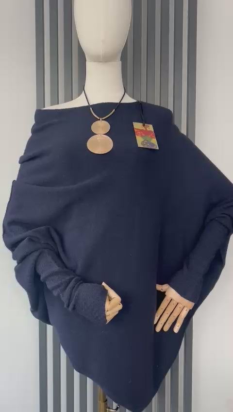 Oversized poncho jumper with buttons on the sleeve - 10 colour available