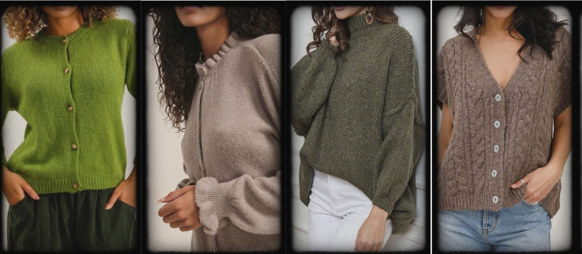 Khaki green jumper with elegant pearl detailing on the back
