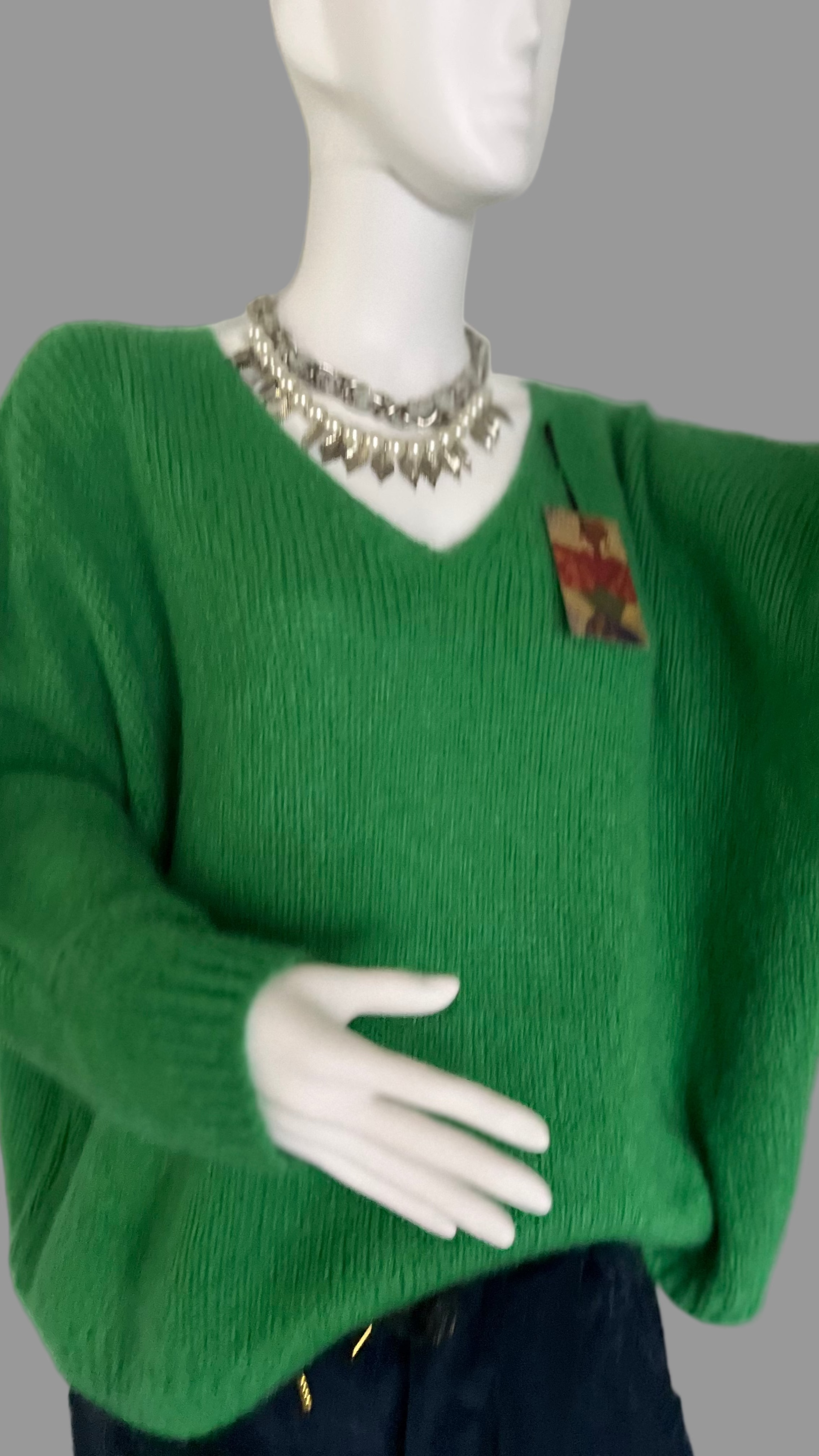 Oversized Mohair V-Neck Jumper - emerald green