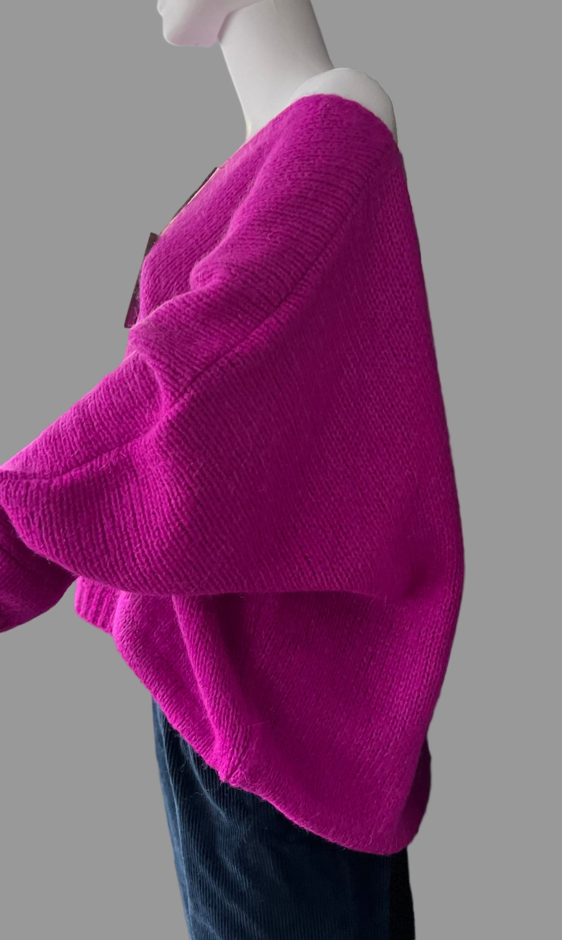 Oversized Mohair V-Neck Jumper - magenta